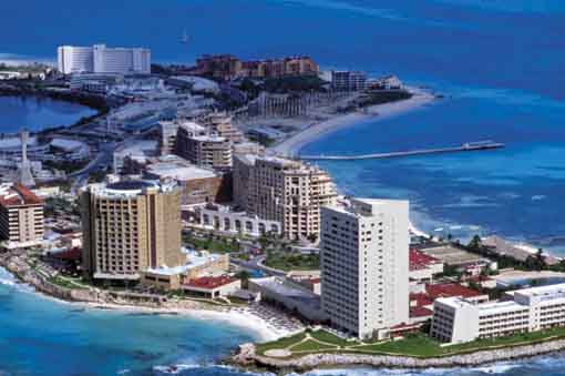 Branou na Mayskou riviéru bude pro české turisty Cancún, kde se nachází mezinárodní letiště. Cancún je jednou z nejpopulárnějších turistických destinací v Mexiku. Turismus je zde alfou a omegou, kvůli turistům toto letovisko ostatně i vzniklo. Jde o souvislý pás hotelů všech možných kategorií a ostatní turistické infrastruktury, který se táhne podél pláží. Turisté zde najdou možnosti pro ekoturistiku, potápění, šnorchlování, jízdu na koni, rybaření, surfování, jízdu na plachetnici či pro golf. Cancún je také jedním z hlavních cílů milovníků extrémních sportů. Tamní 70 metrů vysoké Regio bungee je asi nejlepší příležitostí pro bungee jumping v celém Mexiku. Své si ale v Cancúnu najdou i businessmani či pořadatelé kongresů a konferencí. Častým cílem je Cancún i jako nákupní destinace – zejména Američané do města jezdí nakupovat tradiční řemeslné výrobky, tabák a další zboží. Cancún zkrátka nabízí vše, po čem srdce turisty toužícího strávit příjemnou dovolenou u moře prahne. Kdo však chce poznat to „pravé“ Mexiko, musí vyrazit za hranice města.