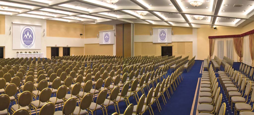 Najväčšia konferenčná miestnosť je pre 650 osôb. Konferenčná sála v spojení s foyer môže poskytnúť viac ako 1000 m2 podlahového priestoru. Je ideálna aj na organizáciu náročných medzinárodných podujatí. Sála sa dá rozdeliť na dve časti. S kapacitou každej časti do 300 osôb. Ďalej máme k dispozícii štyri menšie konferenčné salóniky. Spolu s kapacitou okolo 200 osôb.